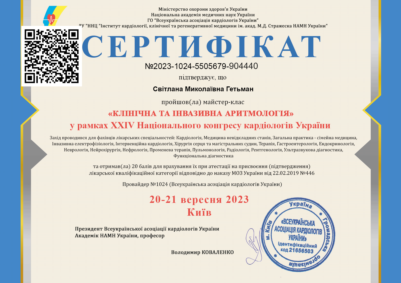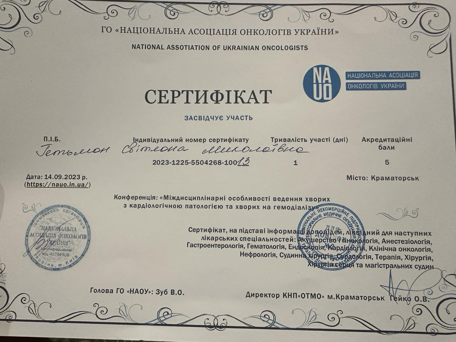 От жіночку привезли до нас – у неї тяжкий аортальний стеноз. Та це ми встановили згодом. А привезли її до нас з діагнозом набряк легень. Ми виключили інфаркт, почали обстежувати. Призначили терапію. І вона жива, здорова. А хворій, на хвилиночку, 94 роки. Ось такими історіями ми можемо гордитися.