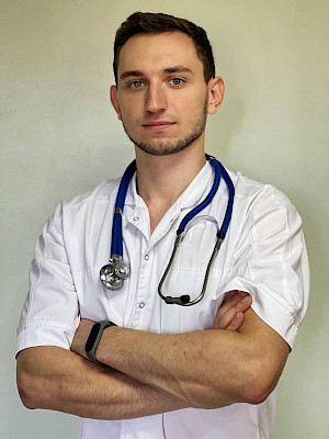 Владиславу Попчуку 27 років. Розпочав інтернатуру в Покровську. А закінчив на Полтавщині. Та незважаючи на повномасштабну війну і близькість до лінії фронту – повернувся працювати на Донеччину. У Краматорському ОТМО лікар рятує хворих уже третій рік.