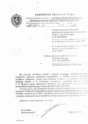 Як свідчать документи, надані нашим журналістам, Профспілка неодноразово зверталася, до Львівської обласної ради, а також до органів державної влади, з проханням надати кошти на фінансування діяльності Львівського будинку вчених. Адже будівля перенесла пожежу і потребувала капітального ремонту. Однак – жодної копійки, ані "владні мужі із Києва", ані львівські "чинуші" не надали.